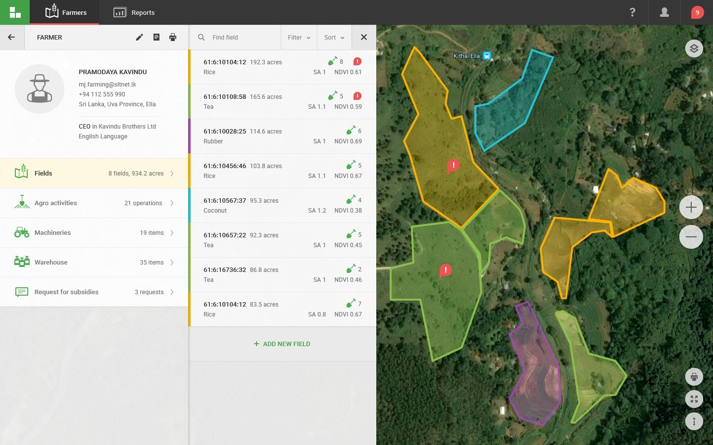 We created a special version of the interface for Sri Lanka Ministry of Agriculture who decided to use the service for controlling the efficiency of land usage and agriculture companies. This sector involves 32% of the country population.